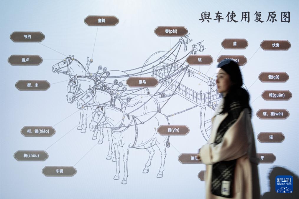1月20日,参观者在“湖北出土先秦车马兵器”展上参观。新华社记者 肖艺九 摄