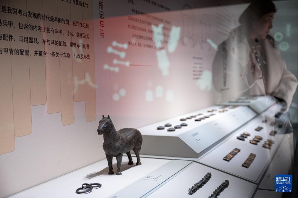 1月20日,枣阳九连墩2号墓出土的铜马在“湖北出土先秦车马兵器”展上展出。新华社记者 肖艺九 摄